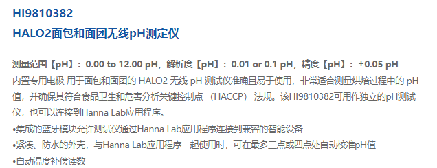 HANNA HI9810382 HALO2面包和面团无线pH测定仪